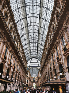 В непосредствена близост до Миланската катедрала се намира най-старият действащ търговски център в Италия. Галерия Виторио Емануеле II е кръстена на краля на Сардиния, който през 1861 г. става първият крал на обединена Италия. Дори и да не обичате да пазарувате или да трябва да ипотекирате жилището си, за да можете да си позволите каквото и да било от дизайнерските бутици, разположени в Галерията ( говорим за Гучи, Прада, Шанел, Луи Вюитон и други подобни), все пак ви препоръчвам една бърза разходка. Архитектурата е наистина впечатляваща и не ви струва нищо просто да разгледате. Насочете се към сърцето на търговския център, където двете алеи се пресичат, и обърнете внимание на мозаечния под. Можете да видите четири различни мозайки, които представляват емблемите на Милано и трите столици на Кралство Италия - Рим, Флоренция и Торино. Символът на Торино - танцуващ бик, обикновено привлича вниманието на мнозинството от посетителите. Легендата гласи, че ако поставите петата си върху тестисите на бика и се завъртите три пъти, това ще ви донесе късмет.